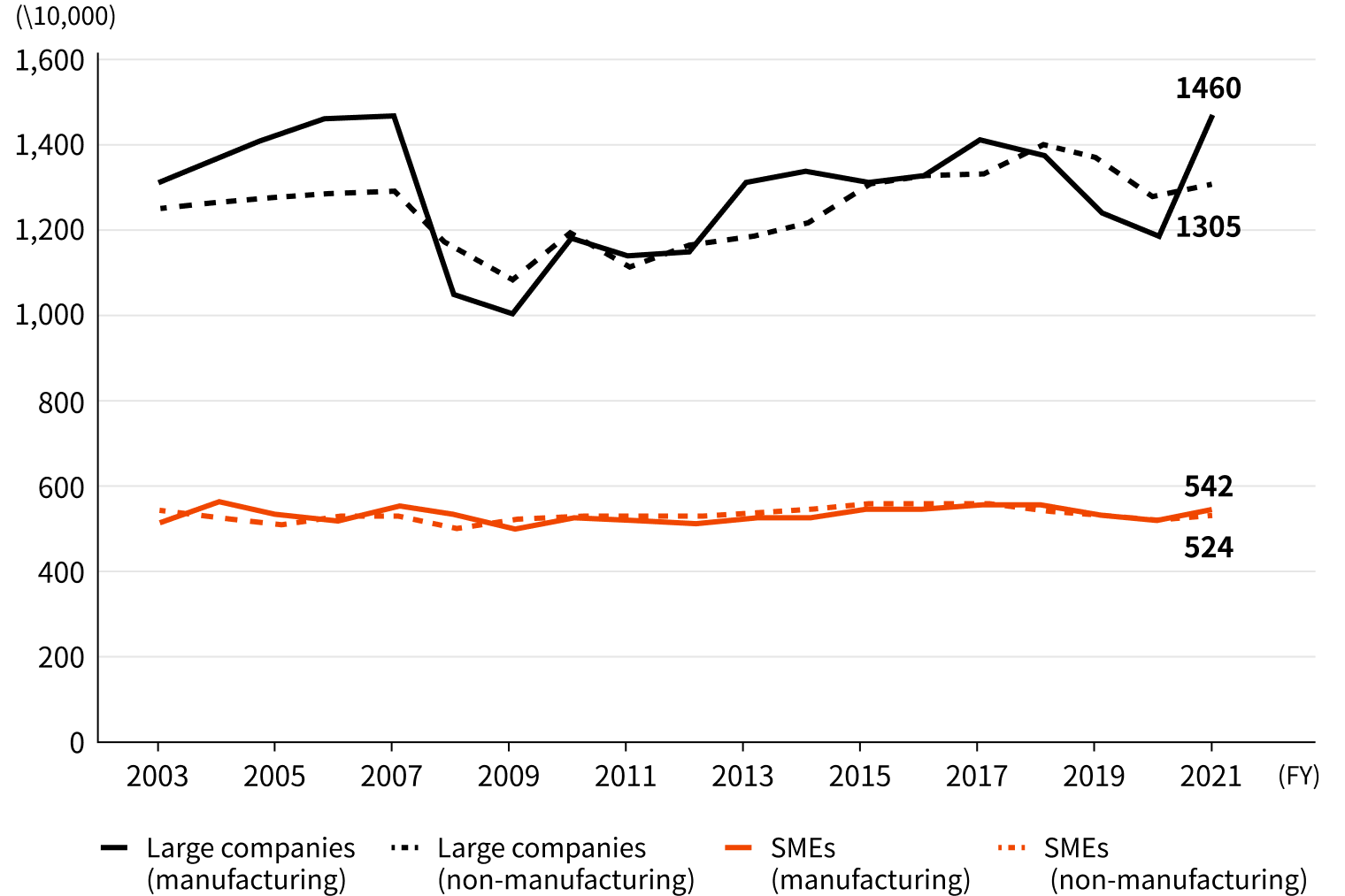 Trend of Labor Productivity at Japanese Large Companies and SMEs*3