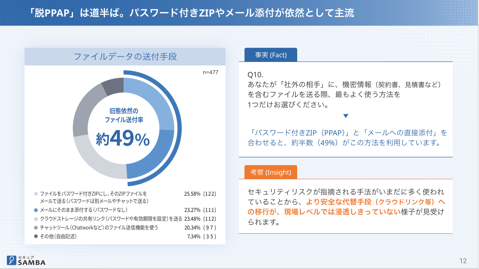 2.「脱PPAP」は道半ば:約49%が依然としてZIP送信・メール添付
